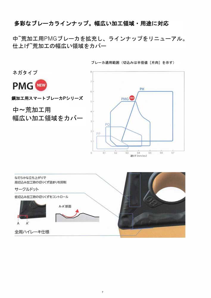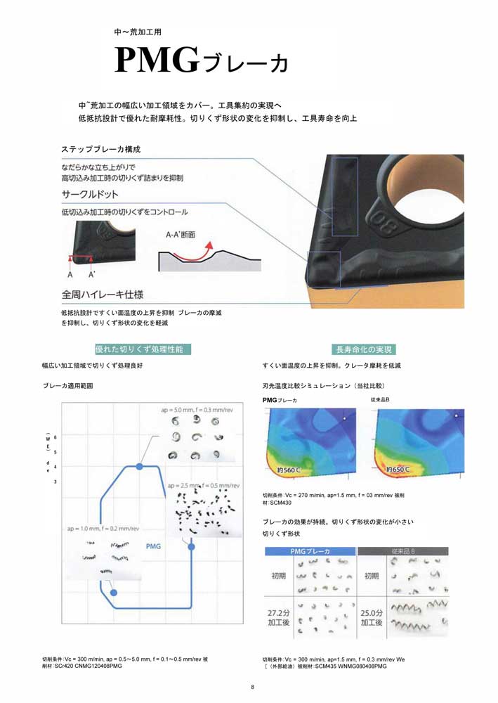 PMGブレーカ 独自設計で幅広い加工領域をカバー 持続する優れた切りくず処理。高寿命に貢献